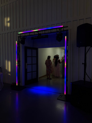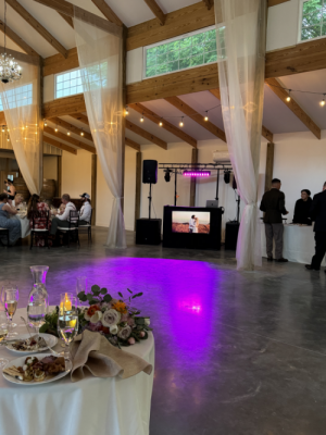 Nothing. I supply pro sound, wireless mics, dance‑floor lighting, and backup gear. If you need ceremony audio outdoors, I’ve got battery‑powered kits too. We also have a portable generator in case of a power outage.